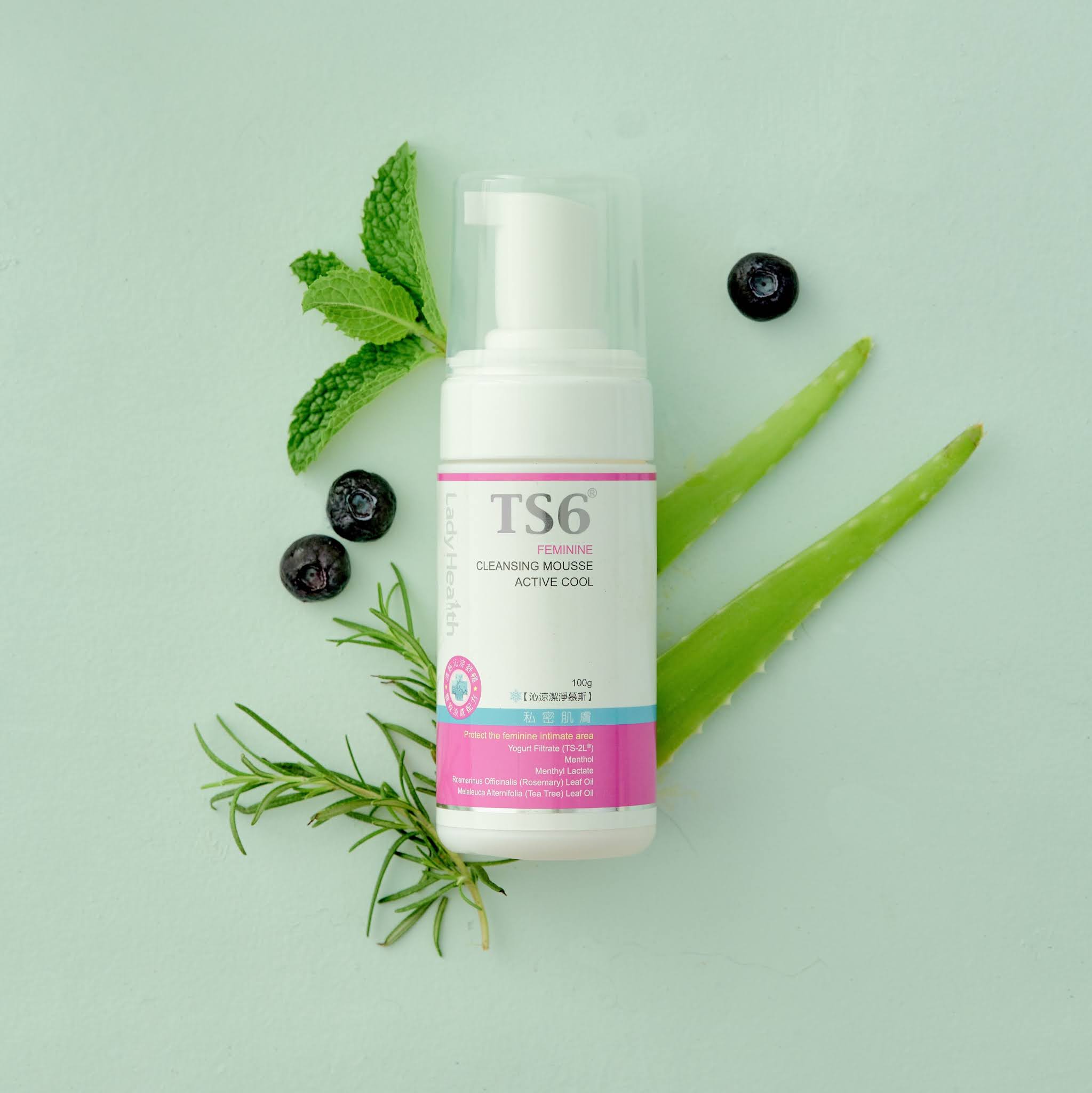 益菌沁涼潔淨系列推薦3:柔潤呵護私密肌-TS6護一生沁涼潔淨慕斯 100g 市價$320 優惠價$299