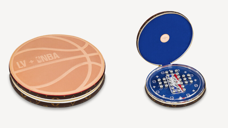 路易威登跳棋組除了常規版,今年與NBA第二彈聯名也有推出特別版。遊戲外罩以皮革製作,正面做成籃球的樣式,印有LV與NBA的logo圖樣,邊緣則以LV經典的褐色老花皮革裝飾。