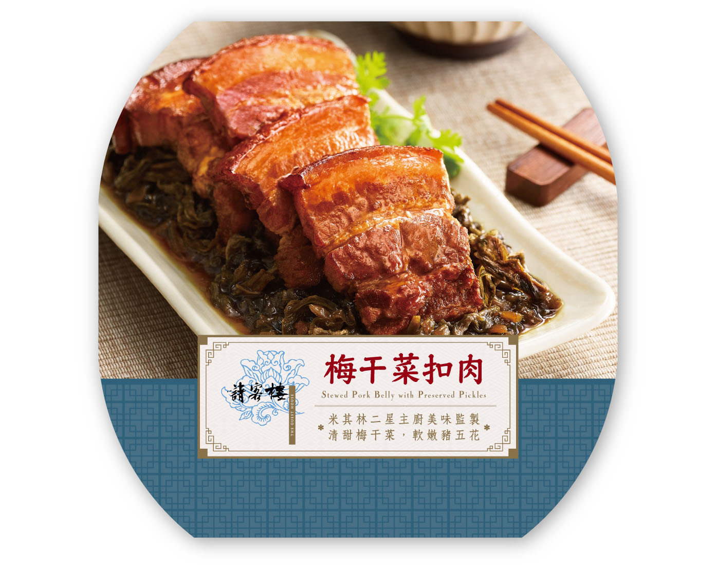 最後,最受期待的就屬於「請客樓」經典菜色「梅干菜扣肉」,這一道菜也是主廚指導店內名菜開發。使用日曬風乾的梅干菜,味道甘醇甜香,與李錦記蒸魚醬油炒出鮮香味,肥瘦勻稱豬五花肉,油炸後與梅干菜一同蒸炊,沒有過多的油膩味道,口感軟嫩入口即化。儂編建議白飯記得先買十碗,真的會不夠配啊~