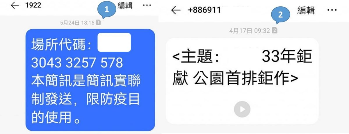 要辨別雙卡手機的簡訊是出自哪張卡並不困難,通常在簡訊上方標別簡訊接收時間上方會出現標示【1】或【2】的小字,這各代表來自SIM 1或SIM 2的簡訊。