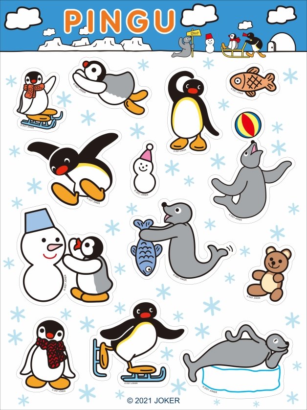 人氣熱銷款「貼紙」有「午茶派對」和「雪地遊樂」兩款,就連Pingu的海豹朋友「Robby」也驚喜現身,看他一下躺在冰上、一下抓魚、一下又拍手大笑,療癒程度滿分!