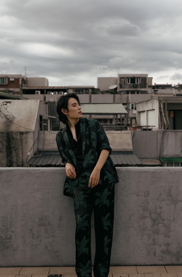 以網路劇《HIStory3-圈套》爆紅的徐鈞浩,標致的五官加上完美的身材比例,讓他深受許喔多少女的喜愛,這次他挑選了 Saint Laurent 絲質成套的棕櫚樹短袖西裝,以黑色為底並搭配深沈的棕櫚樹圖樣,即便是滿版的圖案,但沈穩的色彩讓搭配上也不會過於困難。