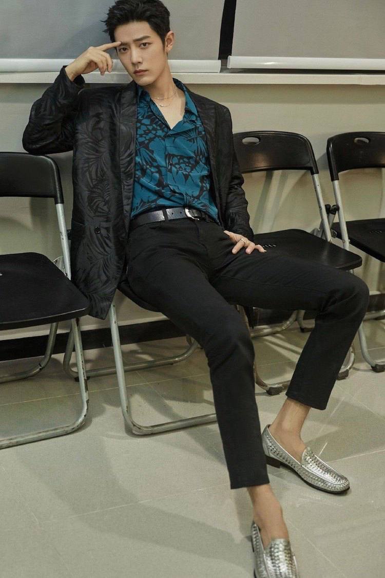 古巴領襯衫是許多男生在近期衣櫃裡必備的單品,這次肖戰便選用充滿休閒感的古巴領 Saint Laurent 印花襯衫做穿搭,搭配上以黑色反光面料呈現棕櫚樹圖樣的西裝外套,以不複雜的色彩加上多種圖樣的堆疊,讓印花也能做出多層次的感覺。