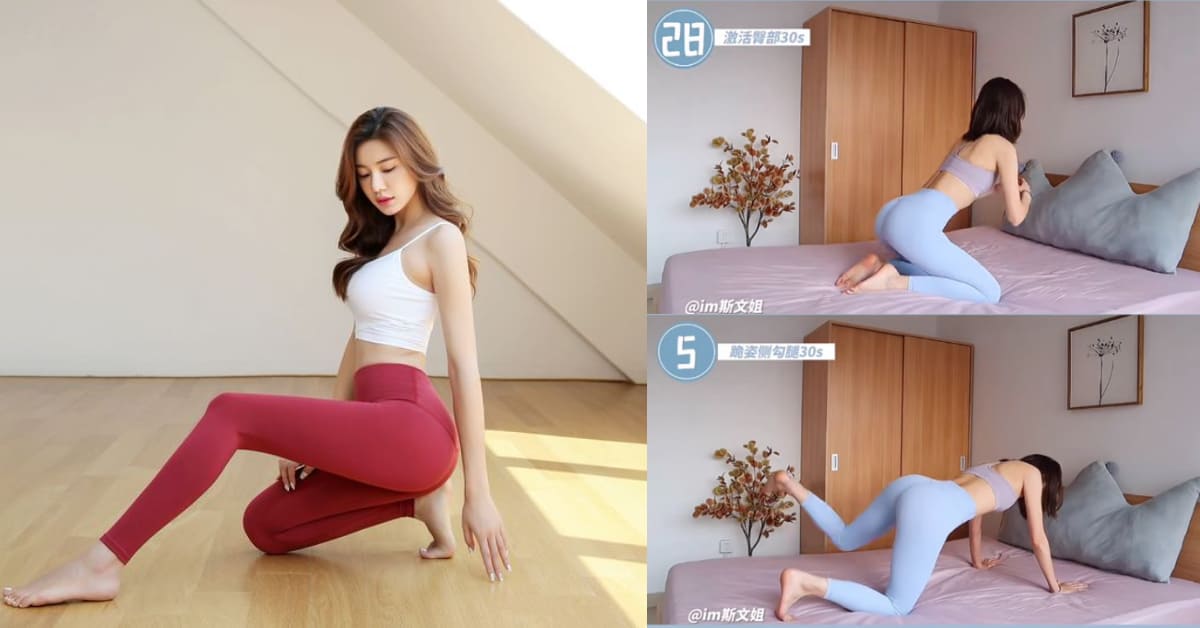 常常穿短褲比基尼,最怕測頹的贅肉液出來~這時你就得試試這招!首先身軀側躺在床鋪上,一手支撐頭部,一手穩固腰盤,將施力點放在核心和側臀肌肉,單腳抬起開合,並起左右交替各30秒,會讓臀型更圓潤立體。