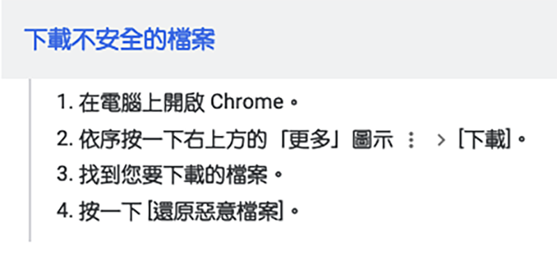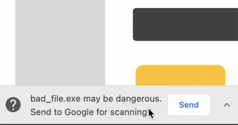 針對更容易危及系統安全的下載功能,Chrome 導入更深度掃描檔案的安全機制。如果初步判讀 Metadata 等特徵認為可能有風險的話,便會再詢問是否要傳送更多資料給 Google 來掃描檔案。若是經過這道程序仍然被認定為危險檔案的話,Chrome 便會阻擋你開啟這個檔案。