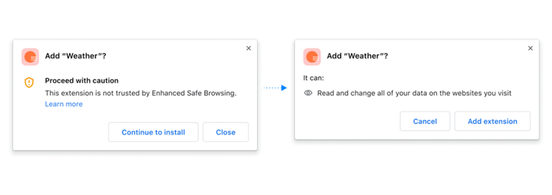 為了解決這樣的疑慮,Chrome 現在針對安裝擴充功能時,還會再加上一道是否有通過強化安全瀏覽(Enhanced Safe Browsing)信任清單的確認機制。讓你可以再冷靜看看它會要求的權限,考量要不要冒險安裝。據稱現階段 Chrome Web Store 線上應用商店有 75% 的 Extension 已在清單之中 - 這數字有點不知道該安心還是不該安心,但至少現在 Chrome 會提醒你這方面的檢查資訊了。