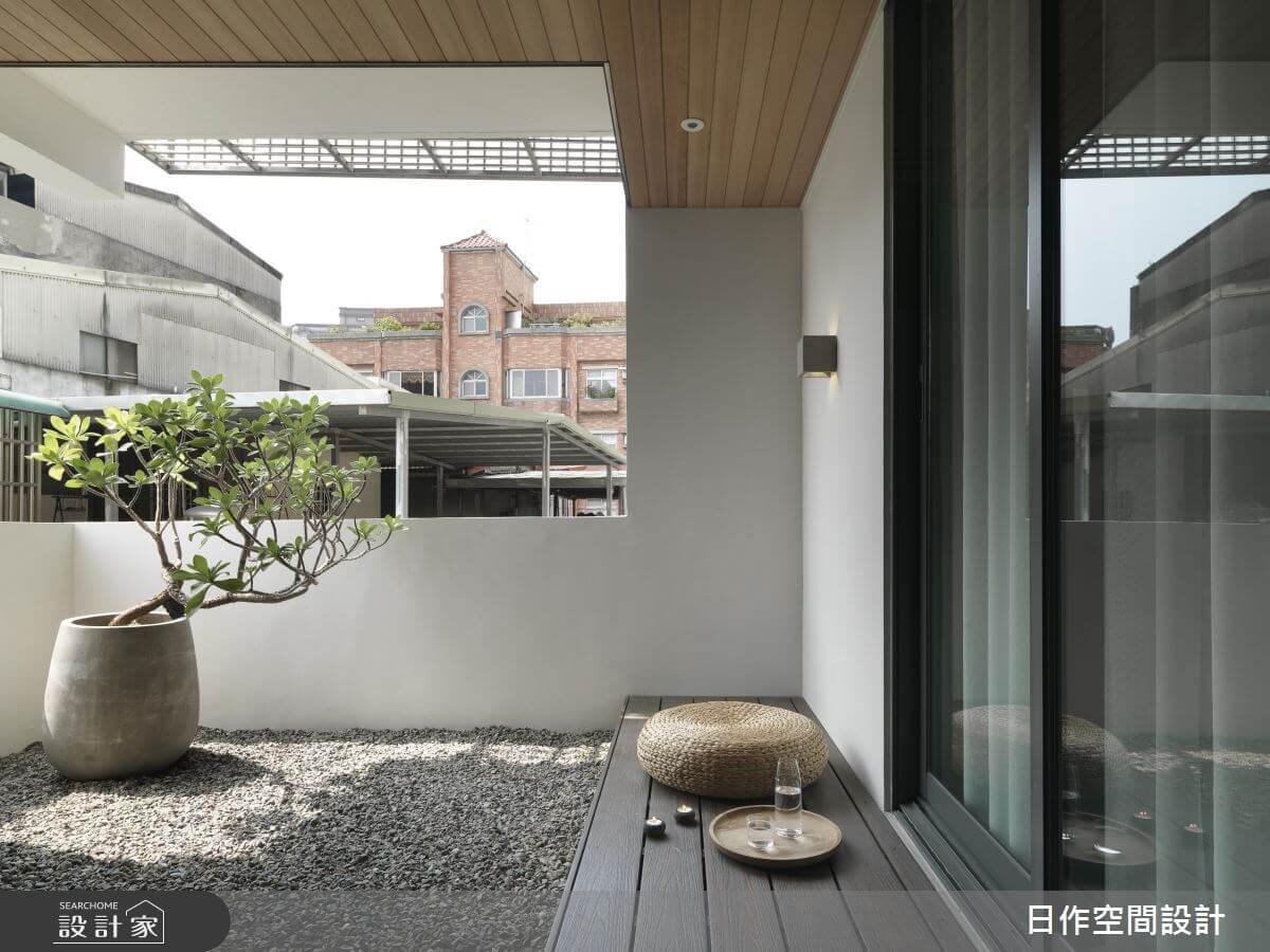 老公寓頂樓後陽台空間寬敞卻經常被閒置,可能因年久失修且處於室外區,多數人僅用於晾曬、存放垃圾浪費不少空間設計的可能。因此設計師先拆除南向實牆,再以退縮方式打造出 3米 X 3米景觀陽台,同時植入「日式緣側」的巧思,跳脫一般人對於老公寓頂樓陽台的想像,也破除建築的框架,宛如將日劇場景搬進家,帶給攝影師屋主靜謐自在的舒展角落。