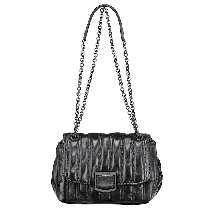 Longchamp 的帆布摺疊包,是許多精品初學者的最愛!近年品牌更鑽研於包款及皮件的設計,這款「Brioche」包款不僅以皮質展現獨特的光澤,柔軟的面料加上炭黑色的設計,更增添他帥氣的風貌。(商品售價:NTD26,400)
