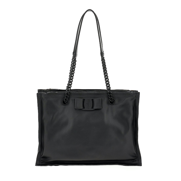 在設計上以往都趨於保守的 Salvatore Ferragamo,自去年推出宛如枕頭的「Viva」包款大受好評後,品牌進氣趁勝追擊,以此包款獨特的澎軟外型再推托特肩背包!全黑的外型加上品牌標誌性的蝴蝶結設計,讓整款包變得更有味道。(商品售價:NTD66,900)