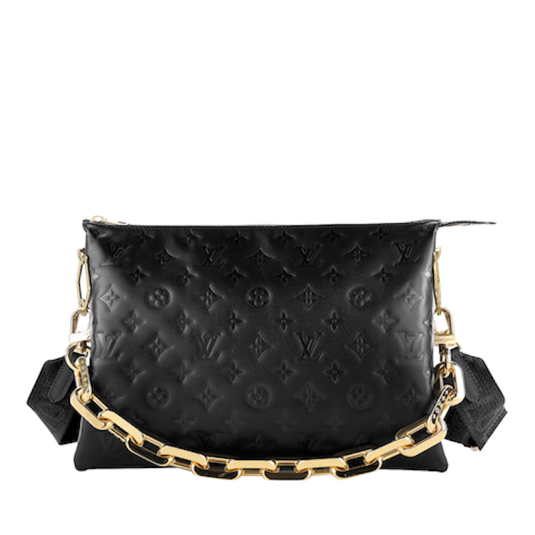 Louis Vuitton 的老花包已經是許多女孩的購物首選,如果想買一款質感與眾不同的,那近期歸出的「Coussin MM」這款包一定可以列入妳的清單中,運用寬肩帶搭配金鍊條的設計,並以細緻的皮質呈現 Monogram 壓紋,金色鍊袋可拆卸當成飾品的設計,更增添這款包的變化性。(商品售價:NTD133,000)