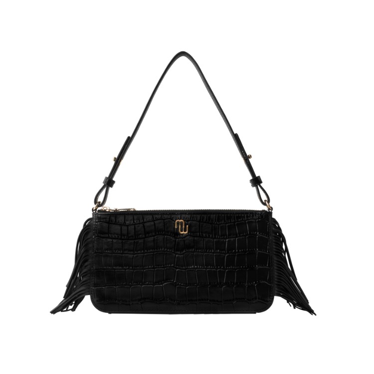 來自法國的輕奢品牌 Maje,近日不僅服裝受到許多韓星愛戴,連包款的設計都圈粉了很多女孩!這款帶有流蘇的腋下肩背包,以動物壓為主要設計,時髦、摩登的外型,非常適合約會使用。(商品售價:NTD9,050)