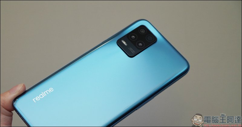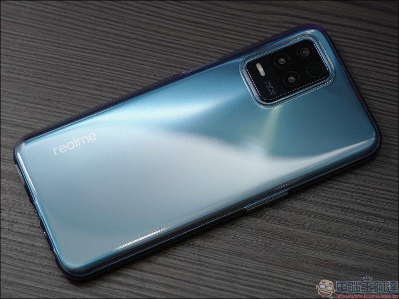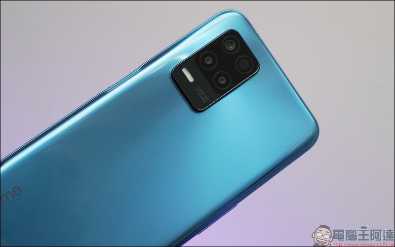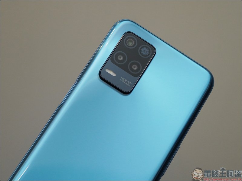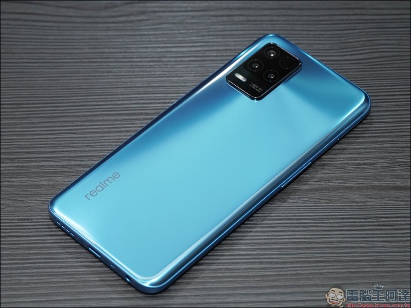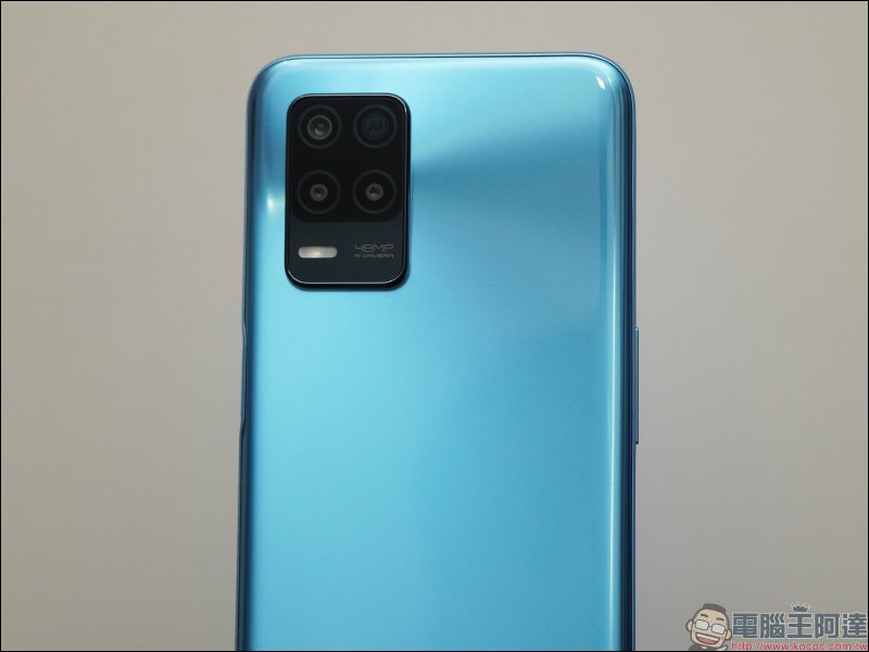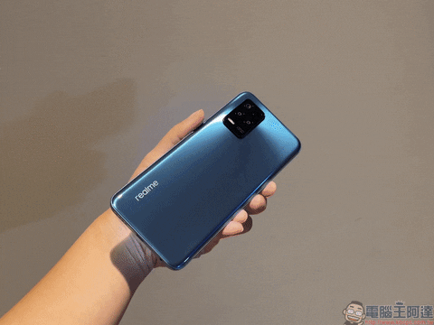 接著進一步觀察 realme 8 5G 的機身背面設計,這次我們取得測試的是「飆速藍」配色,另外也有「飆速黑」可供選擇。 3C 產品以往給人冷冽、科技感的印象,選擇黑色和藍色背蓋的設計也更為合理。不過 realme 在 realme 8 5G 的機身採用高亮度銦電鍍與立體化設計,能在光線不同的照射角度下呈現多樣的變化,讓機背不顯得過於平凡。