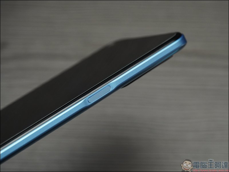 realme 8 5G 的機身右側配備結合電源鍵的側邊指紋感應器,也能經由設定長按電源鍵喚醒 Google 助理。
