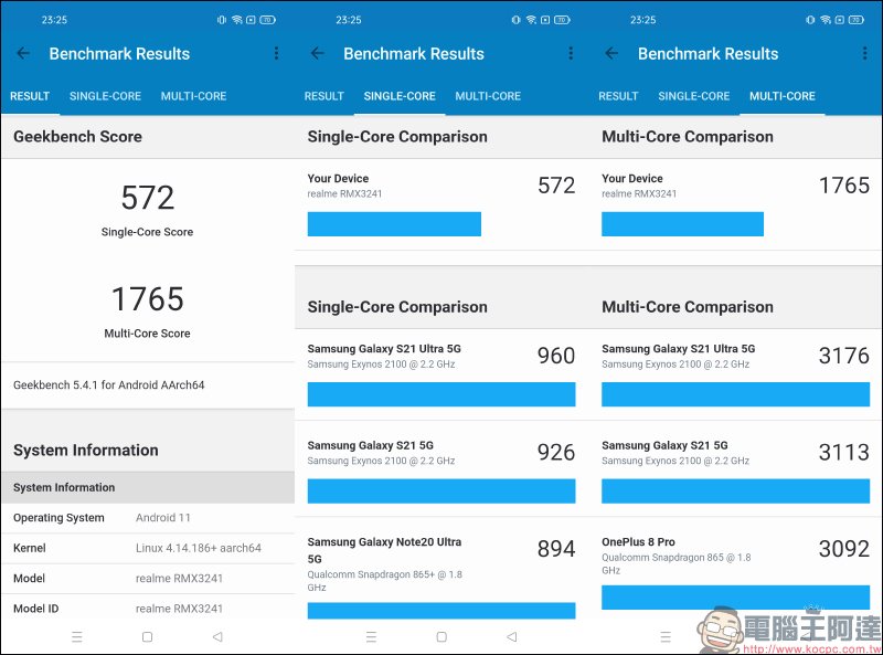 Geekbench 5 實測單核心跑分 572 分、多核心跑分則為 1765 分。