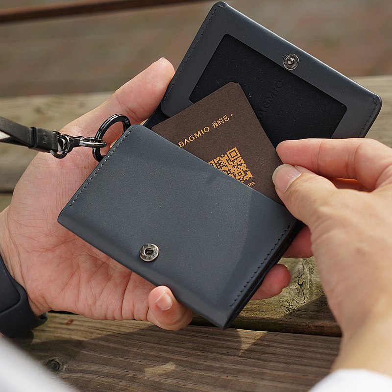 這款 Vigor 深灰名片夾主要是牛皮材質,摸起來很有質感,而且很特別的是,這款名片夾還有鎳黑金屬圈設計,可以自己另外加一條手掛繩,這樣在拿名片夾的時候就更方便囉~