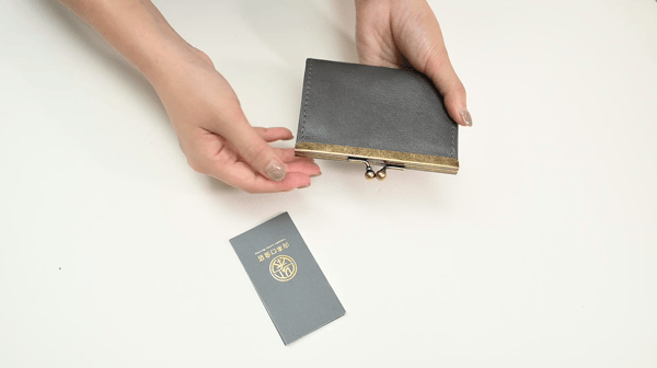接下來這款名片夾的材質是山羊皮,而且選用的是來自義大利 INCAS 皮廠的山羊皮,搭配口金包的開口設計,整個名片夾的質感特別好!再加上名片夾的顏色是葡萄茶色,看起來既復古又時尚。