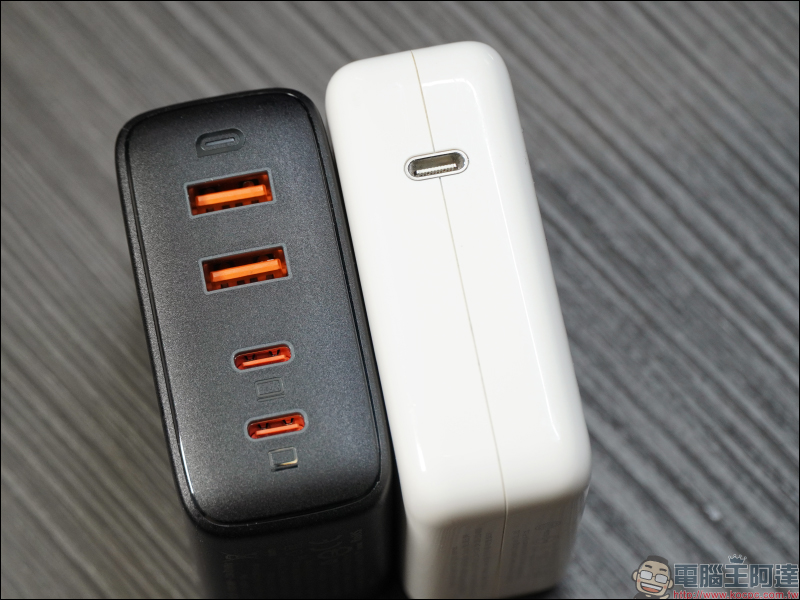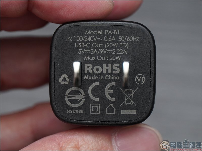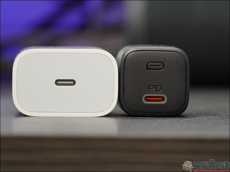 對比 Apple 20W USB-C 充電器,更可以感受到 PA-B1 有多小巧,大約只有 50% 的體積。