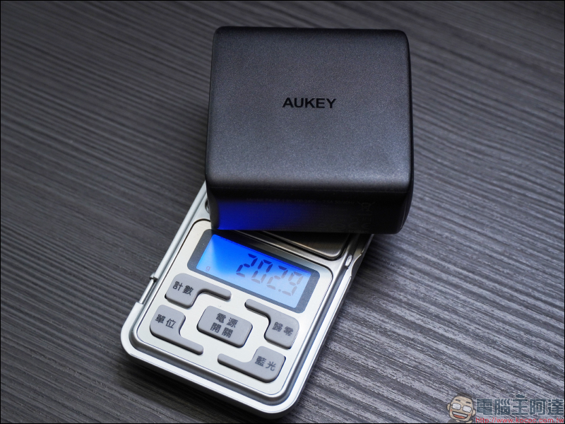 重量方面, AUKEY Omnia Mix 4 100W(PA-B7)官方公佈的重量為 220 克,不過筆者實測則只有 202.9 克。