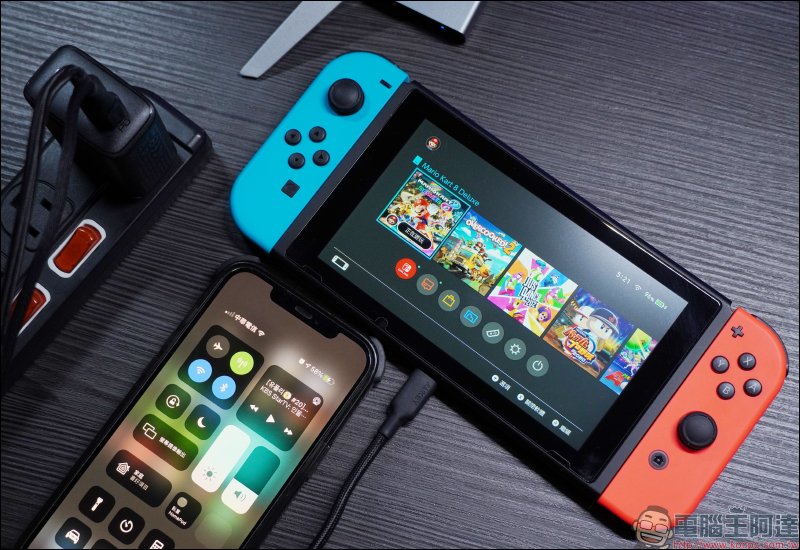 當然, AUKEY Omnia Duo 65W(PA-B4) 也能為 Switch 遊戲機等裝置也能同時進行充電,如果想一邊玩遊戲一邊讓手機快速補給電力也都相當適合日常容易感到電量焦慮的民眾。