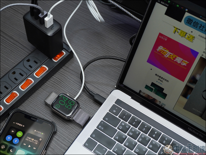 然而,當面對這類相對重度的充電使用需求,這時就得確保兩台筆電(或筆電搭配平板電腦)都能有滿滿的電力,同時也不能忘記為 iPhone 和 Apple Watch 進行充電,免得臨時要收起裝備移動去趕車、趕飛機卻在下一個地點發現電力不足的悲劇。
