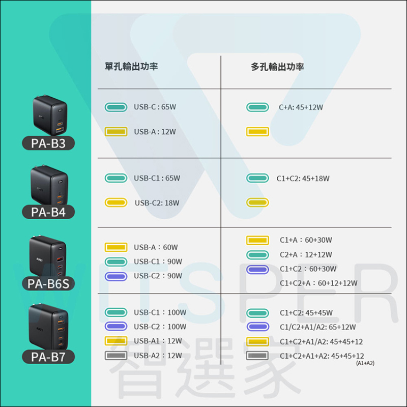 而且 AUKEY Omnia Mix 4 100W(PA-B7)的輸出功率更強大、更實用。