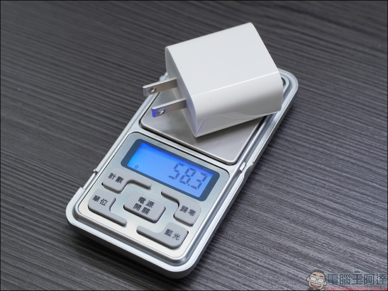對比 Apple 20W USB-C 充電器則有 58.3 克。