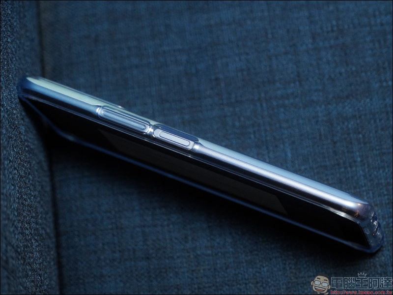 原廠附贈的透明保護套也有適當的開孔設計,讓裝上保護套反而更容易掌握解鎖指紋辨識的按鍵位置。