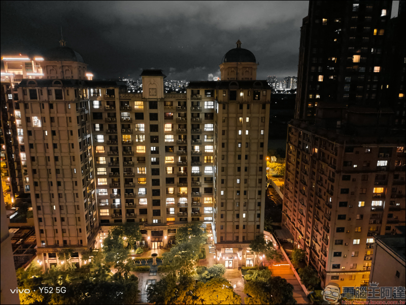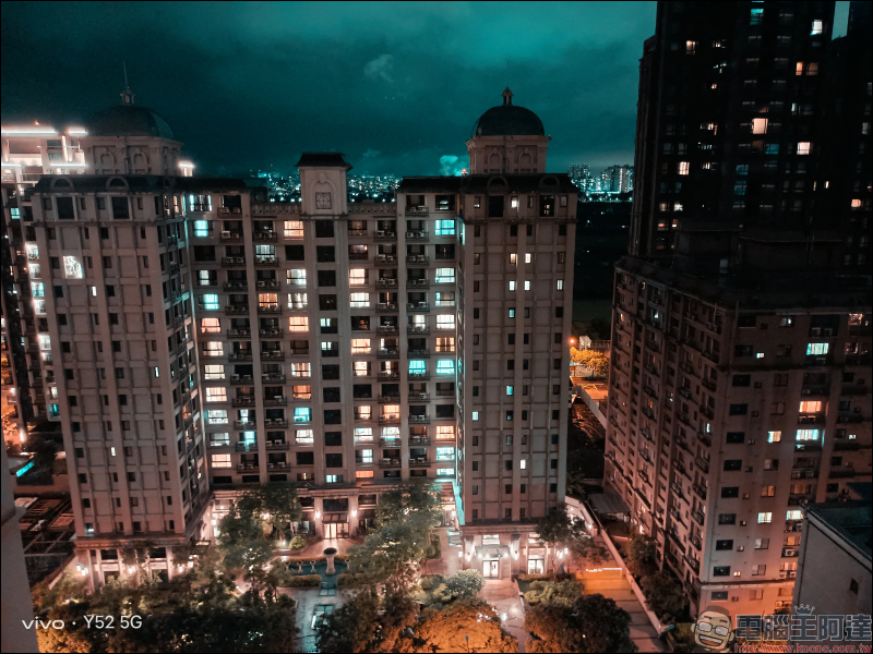 另外, vivo Y52 5G 也內建多種夜景模式濾鏡,讓拍攝夜景照片除了更清晰、明亮,也更有不同的夜間風格。首先是未開啟任何風格(濾鏡)的一般夜間模式: