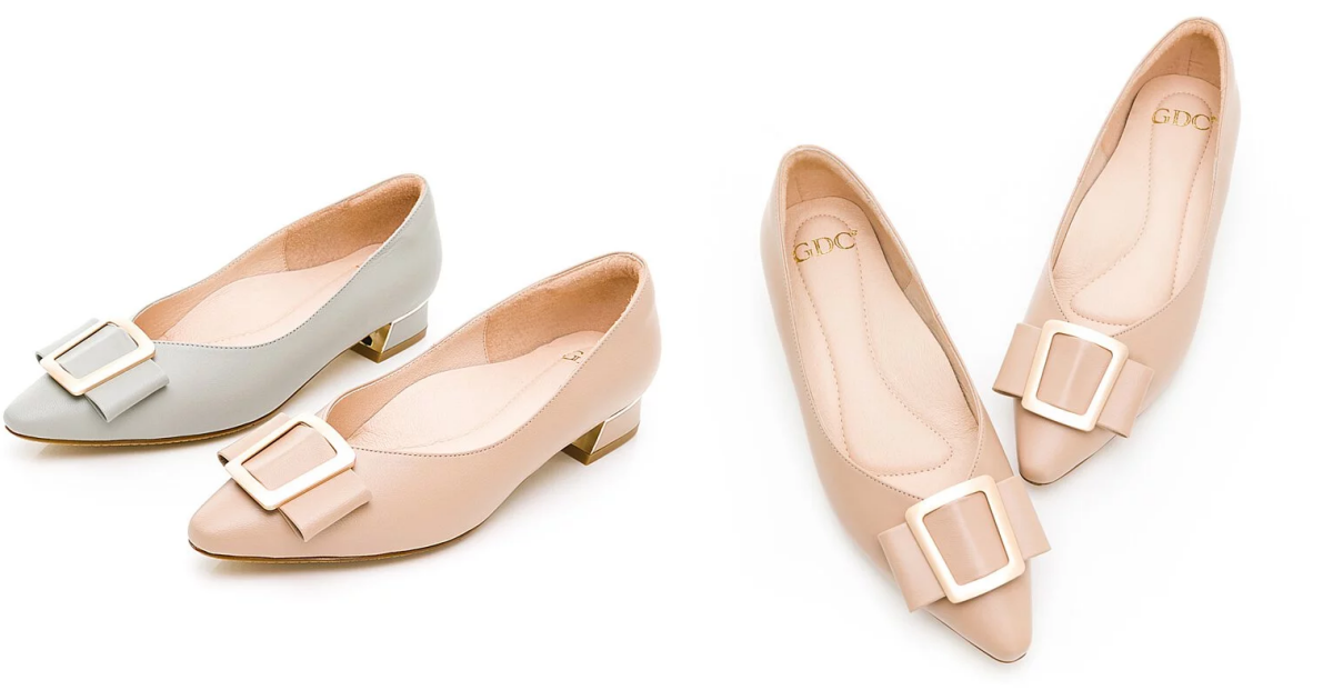 GDC氣質霧感真皮啞光金扣,蝴蝶結尖頭搭配小低跟,最佳的上班素色鞋,鞋面採用霧感柔軟羊皮的真皮面料,啞光金扣飾蝴蝶結點綴,最適合想低調又不失優雅打扮的你。