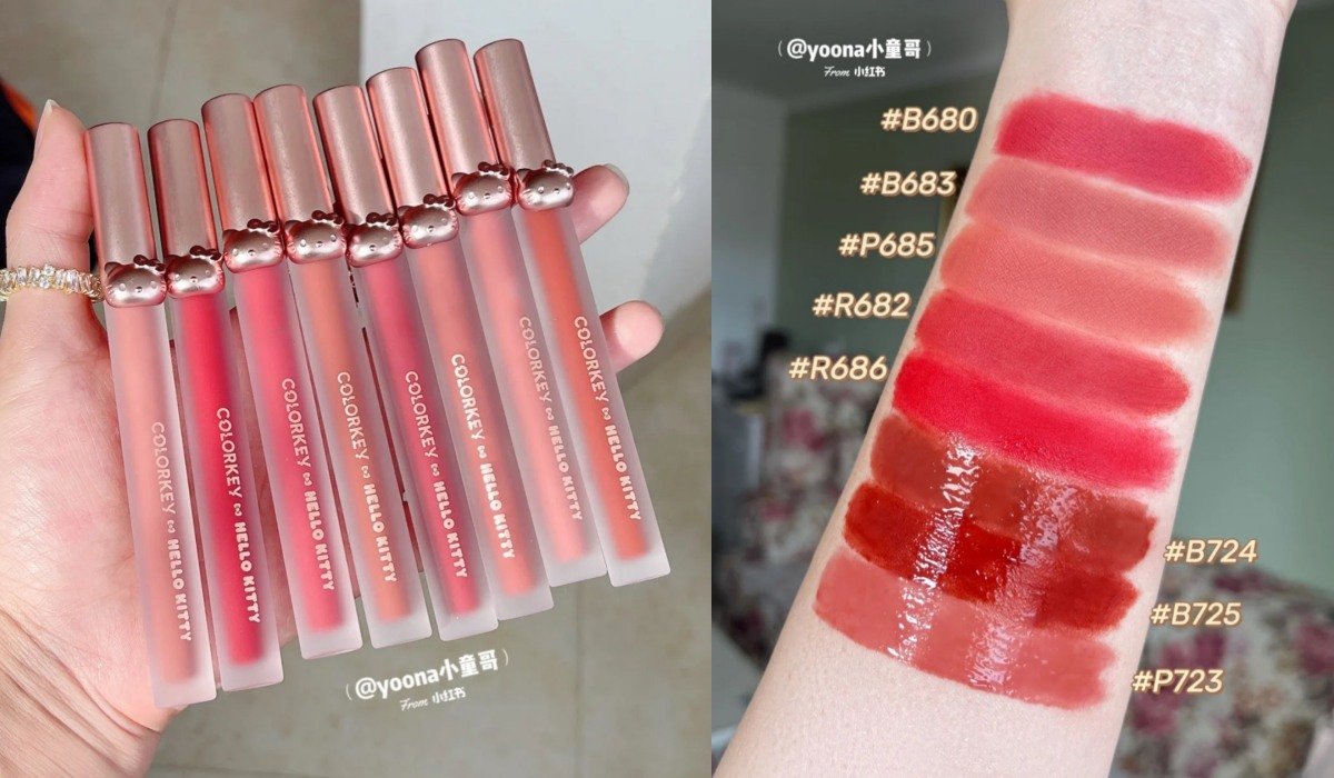 COLORKEY回購率最高的空氣唇釉,這次也特別推出Kitty聯名限定包裝啦!共有兩種質地可選擇,分別為輕霧絲絨以及鏡光,總共13個色選,不論是想走甜美、乖巧可人還是火辣小甜心通通都能滿足需求。