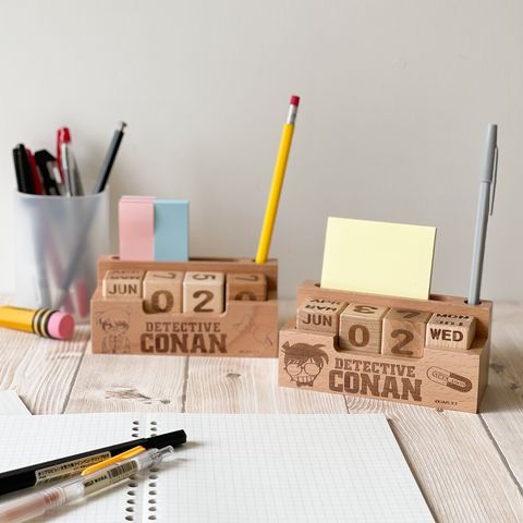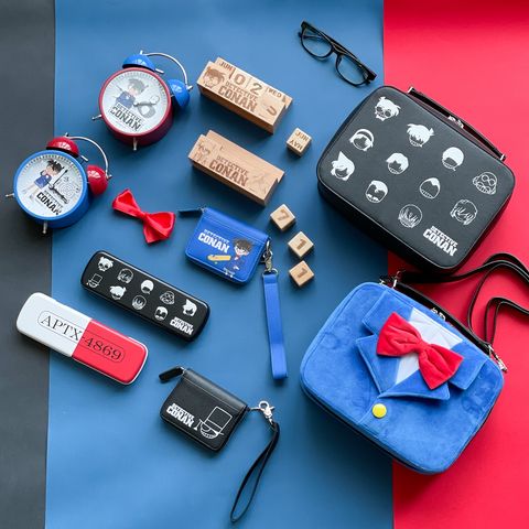 「名偵探柯南精品集點送」,針對學生、上班族群推出雙層馬口鐵鉛筆盒、實木桌上型萬年曆、復古造型鬧鐘、零錢鑰匙包、肩背手提兩用包..等10款粉絲必備且實用的限定周邊商品。