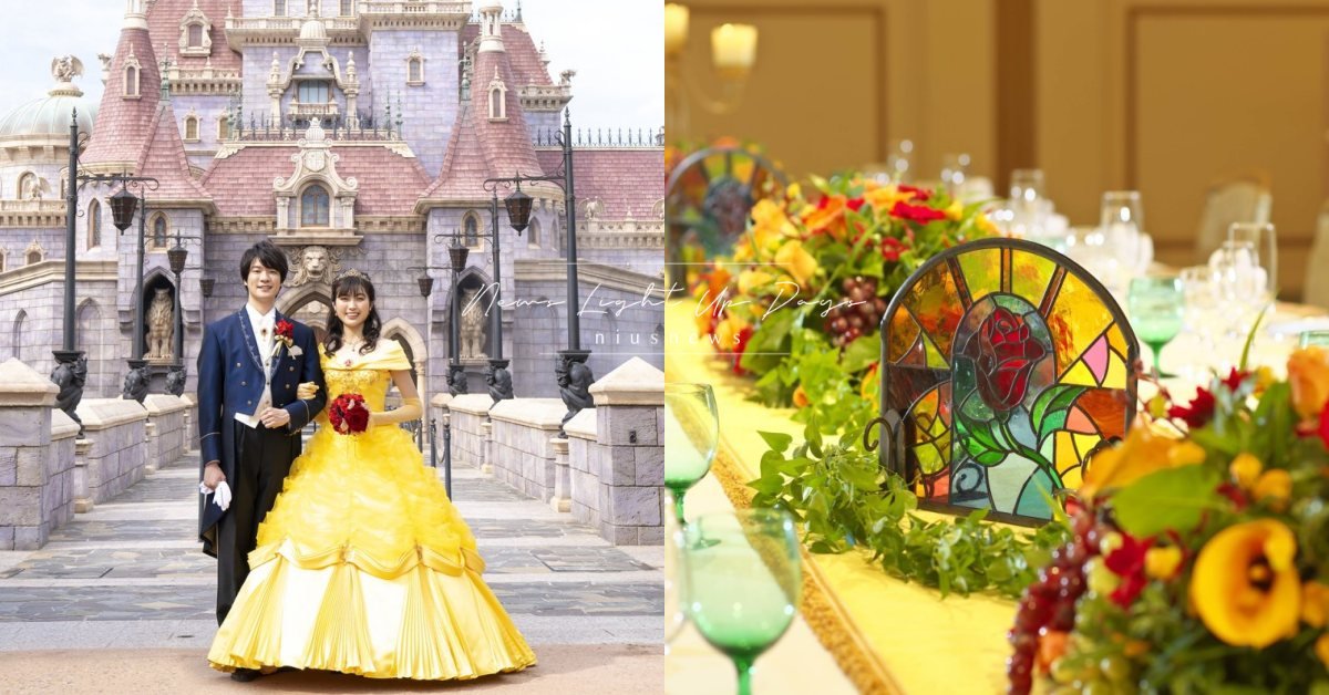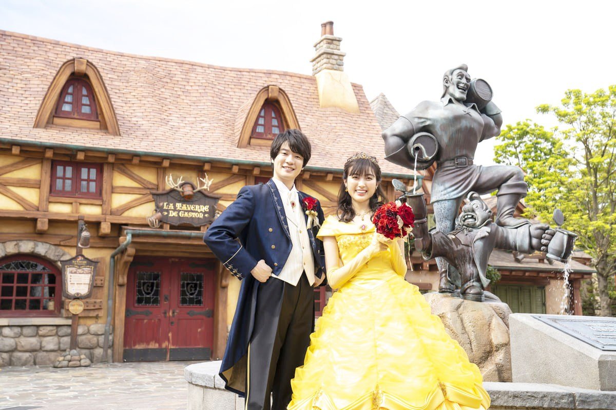迪士尼大使大飯店童話婚禮推出「魔法玫瑰寫真」專案,提供王子服裝與貝兒的黃色禮服,讓新人們可在粉色城堡、貝兒住的村莊拍攝婚紗照,共可帶回20張照片,預計2021年7月5日開放預訂,9月正式登場,售價662,000日元(含稅,約新台幣17萬元),可享拍攝前一晚飯店住宿優惠與拍攝日化妝費用優惠。
