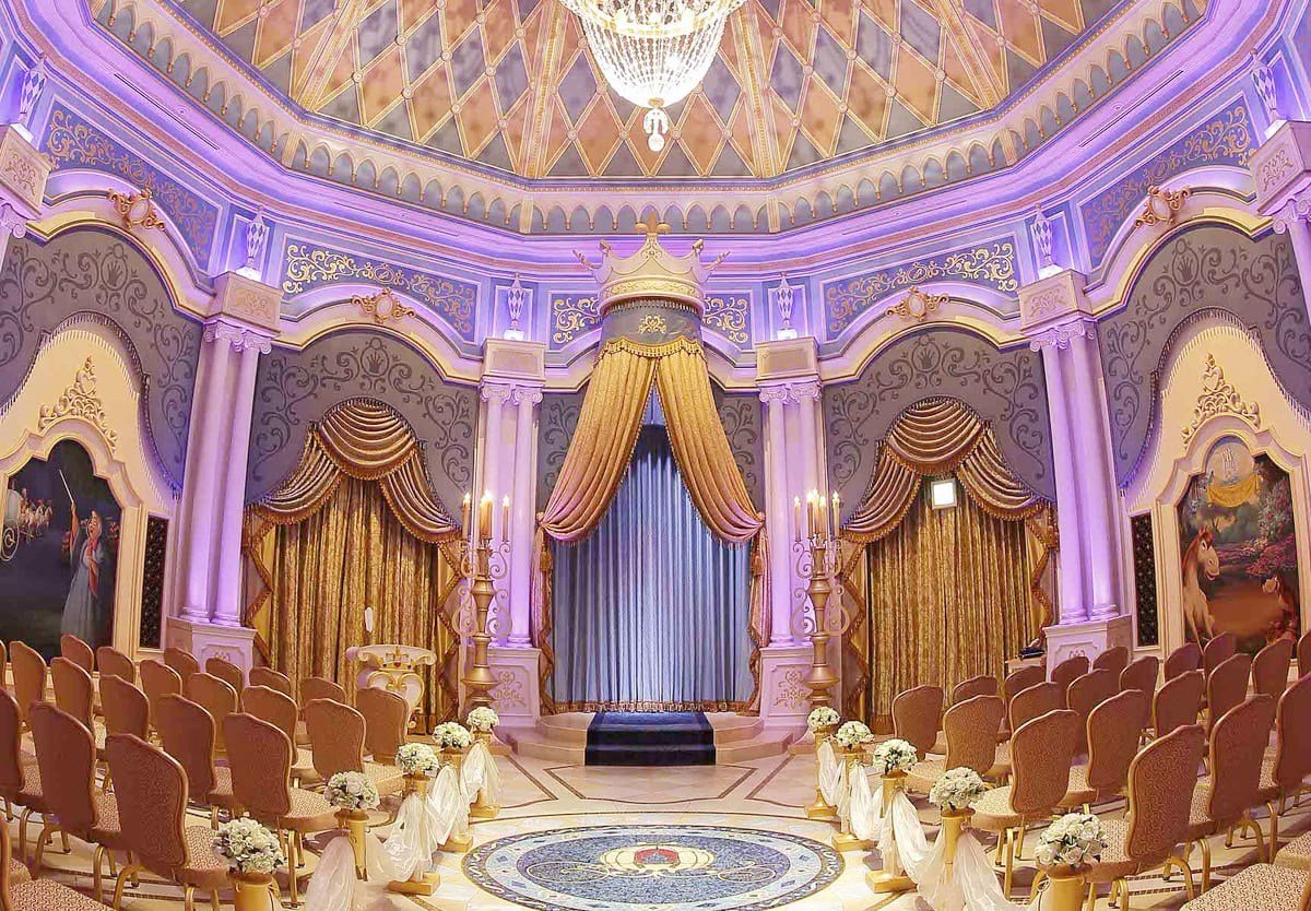 除了拍婚紗之外,迪士尼大使大飯店、東京迪士尼海洋酒店與東京迪士尼樂園酒店也提供場地讓新人舉行婚禮,若是選擇東京迪士尼海洋酒店,新郎新娘還可以穿著婚服,乘坐設施「威尼斯貢多拉遊船」欣賞風景。
