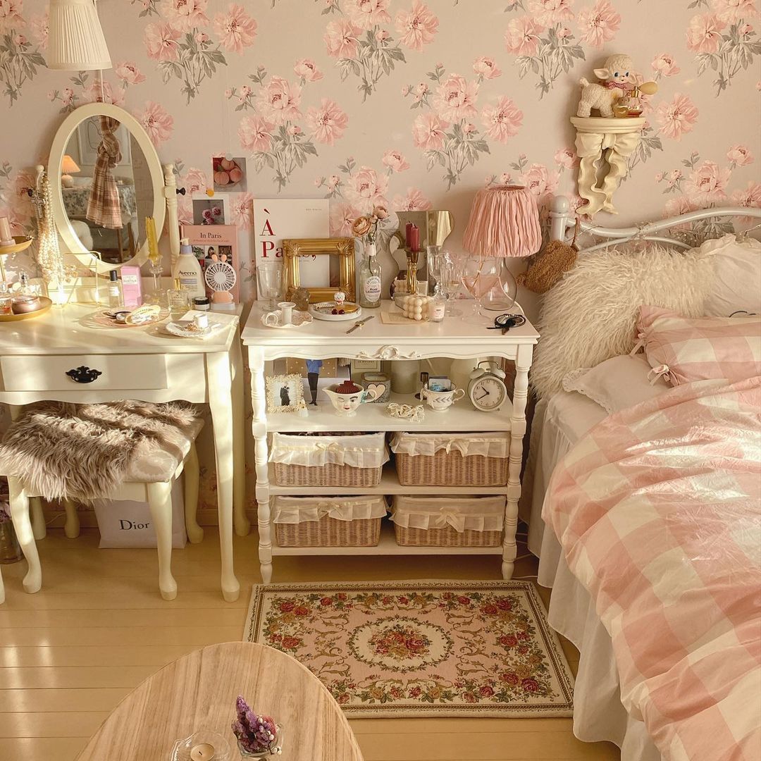 建議大家先掌握自己的生活模式,再來考慮如何佈置房間。舉例來說,照片中的房間將梳妝台與飾品收納櫃放在床邊,這樣一來,起床後就能迅速地開始梳妝打扮!晚上洗完澡後,也能直接坐到床邊的梳妝台前進行睡前保養,在生活起居上非常方便。
