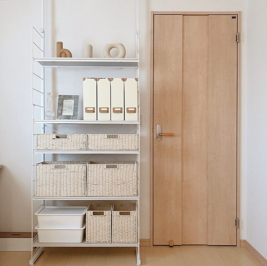 如果房裡有很多教科書或工作用的資料,建議你將這些資料統一收納在同一個架子上。如果將重要物品分散收納在各處,要找的時候會很麻煩,所以最好收納在同一個地方。只要統一選用同款收納箱,就能讓收納架看起來整齊又清爽!