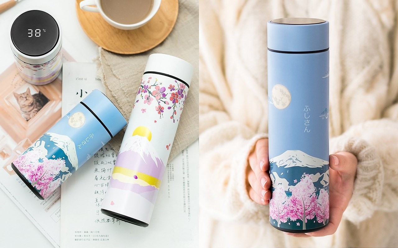 這款富士山保溫杯厲害了,除了保溫杯上有著美美的富士山風景之外,還加入了最新的智能科技,保溫杯的杯蓋竟然能夠顯示保溫杯裡面的溫度!可以看到溫度真的很方便,裝溫水的時候就不用怕裝太熱,不小心燙到嘴巴。
