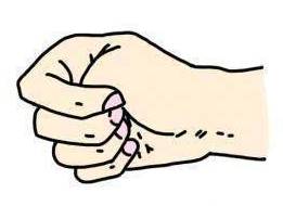 B.大姆指向內屈曲