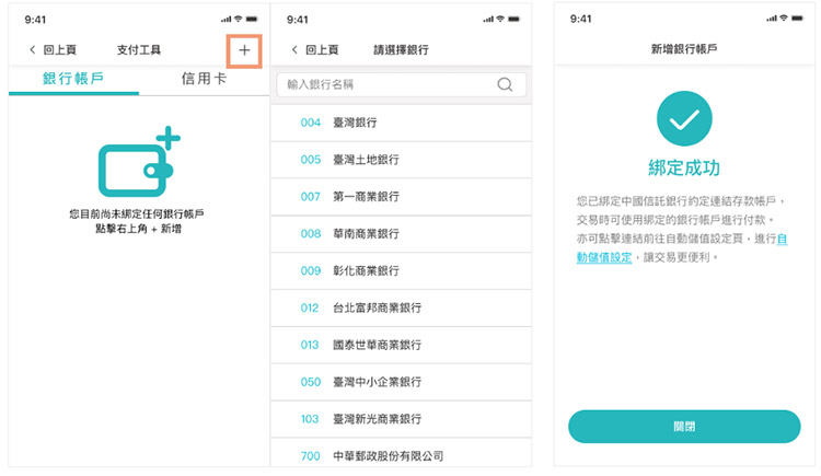 3.點選右上角「+」新增連結銀行帳戶