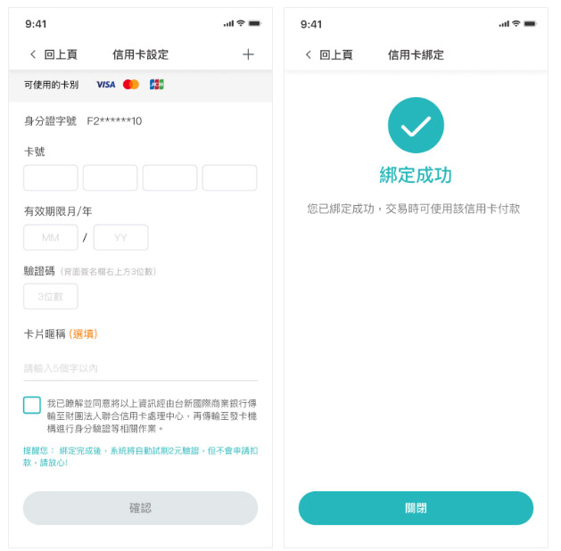 信用卡綁定流程