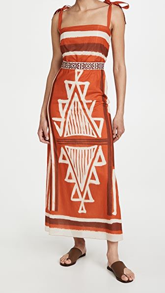 顯白磚紅色單品推薦#2:Johanna Ortiz綁帶圖騰印花洋裝