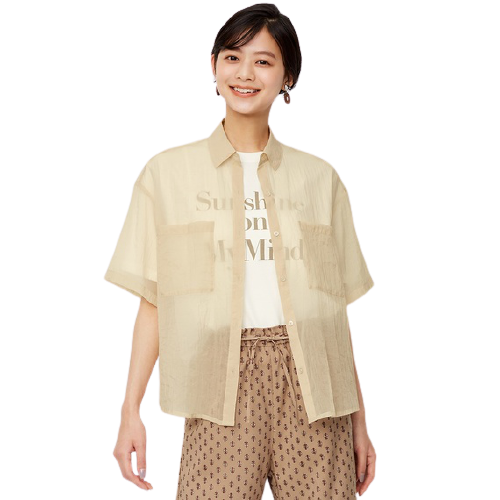 以時尚的透膚材質製成的寬版輕盈襯衫,可當上衣也作為外套使用,相當實搭。除此之外,也可以當作細肩帶連身裙或背心、短胸衣的內搭使用,透過布料厚薄層次的堆疊,迅速提升整體造型的時髦度。