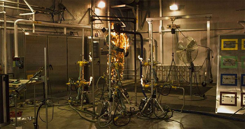 ▲正在進行服裝的防火性測試(圖片來源:EUROLAB)