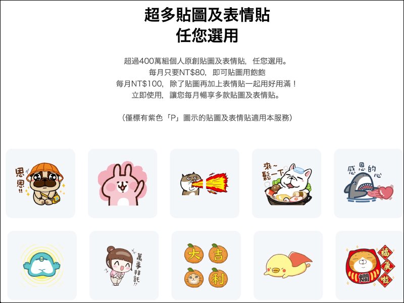 LINE 貼圖超值方案正式在台上線,超過 400 萬組貼圖任選!首月推出免費試用