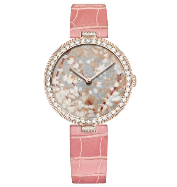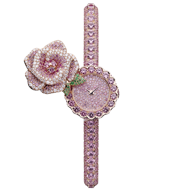 從小受到母親繾綣澆灌的玫瑰花園所影響,玫瑰花成了迪奧先生日後創立品牌的靈感根基並將此精神貫注旗下個各產品線之中,無論時裝、香水、美妝、珠寶或鐘錶…而這款出自「La D de Dior」系列一員的粉紅色玫瑰造形神秘珠寶錶,則是珠寶暨腕錶創意總監Victoire de Castellane,再以別富時代精神的手法,用閃著火光的鑽石、浪漫柔和的粉紅色寶石相互交織、堆砌,重新慶誌那朵朵在迪奧歷史中迎風開揚的玫瑰,永恒美麗、璀燦發光。