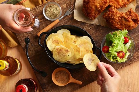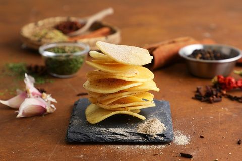 沙發薯仔採用新鮮馬鈴薯製成紮實綿密的美味洋芋片,搭上九層塔、椒麻、煙燻紅椒等不同口味椒鹽粉,並特別添加由非基因改造大豆發酵而成的益生菌,讓你吃著低卡洋芋片時,感受融合一體的香料、益生菌粉,讓你越吃越不能自己!