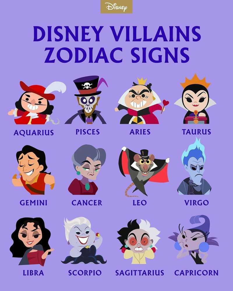 「反派人物」一直是迪士尼電影中不可或缺的靈魂人物,近日迪士尼官方公布反派角色12星座代表人物