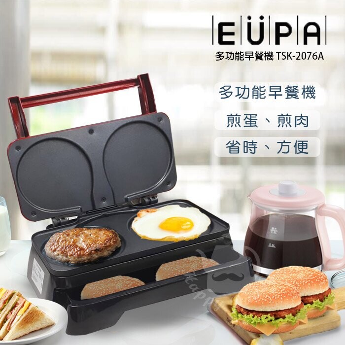 EUPA早餐機算是熱銷多年的款式了,基本功能一應俱全,搭配超划算的價格,可以說是CP值超高的早餐機。早餐機的功能雖然比較簡單,但是基本的煎烤功能都具備,機台尺寸也不大,適合出門在外租屋的小資族使用。