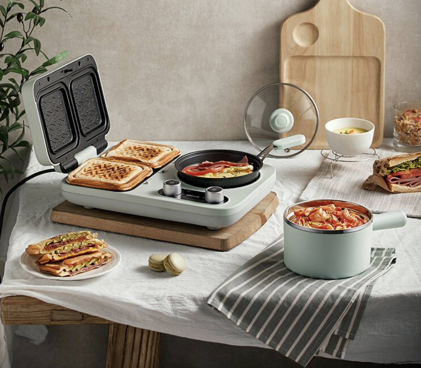 多功能早餐機就是將煎盤、烤箱、煮鍋等功能合為一機的家用電器,有些還額外添加煮咖啡的功能,十分便利也不佔空間,而且同時可以處理多樣食材,大大節省準備早餐的時間,蠻適合小家庭廚房空間不大,或是租屋處沒有廚房的朋友使用。