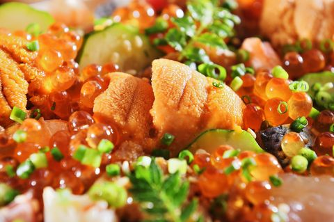 喜愛海鮮的人尤其不能錯過「海鮮散壽司」和「海鮮太捲」。「海鮮散壽司」選用北海道紫海膽,而「海鮮太捲」選用的是北海道赤海膽,兩款料理都能同時品嚐到晶亮飽滿的鮭魚卵、鮪魚赤身等鮮美食材!