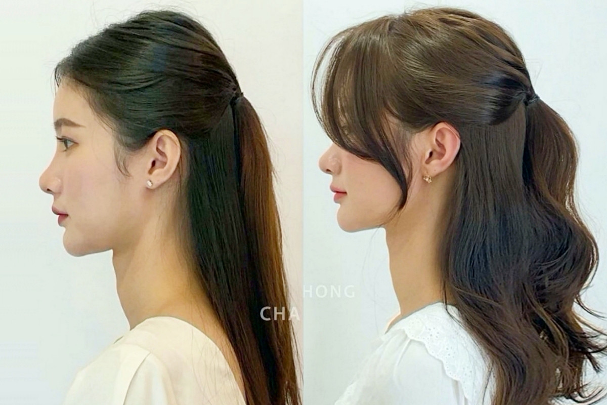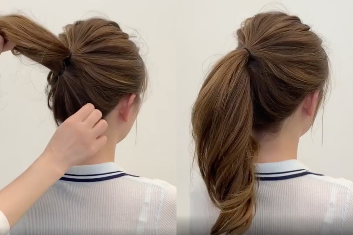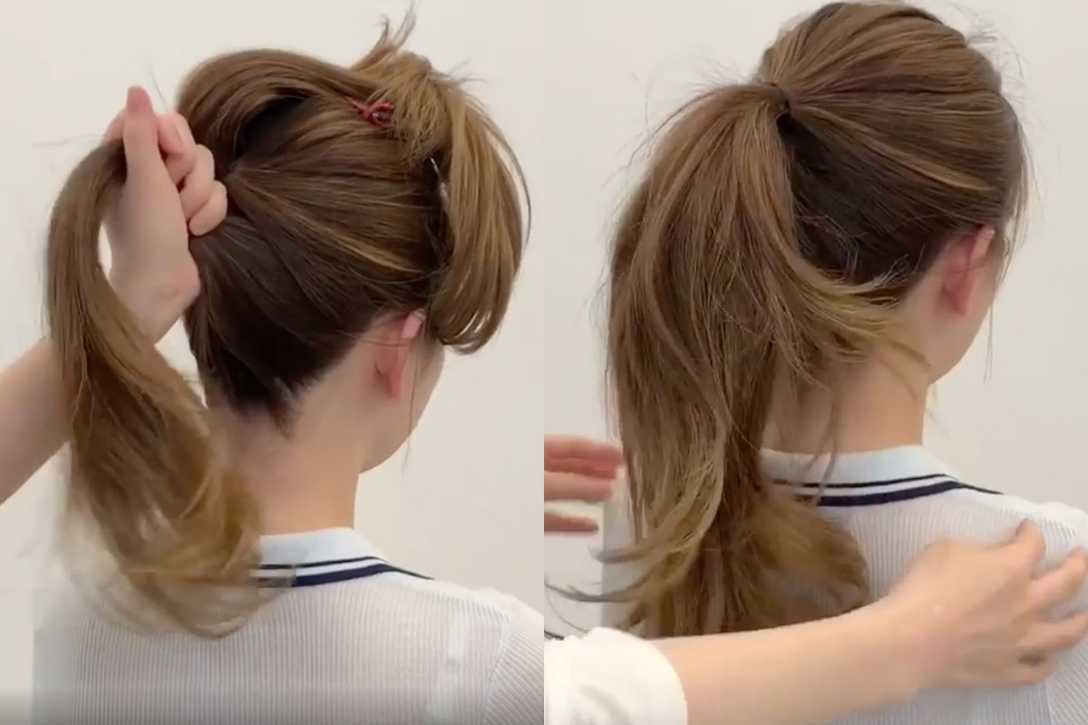 比起低馬尾、高馬尾可以更修飾扁頭頭型!可以偷學髮型師這款雙層馬尾技巧,將馬尾綁出上、下兩個,之後再全部放下後,馬尾看起來會比只綁一個還要長、髮量也會看起來更多!